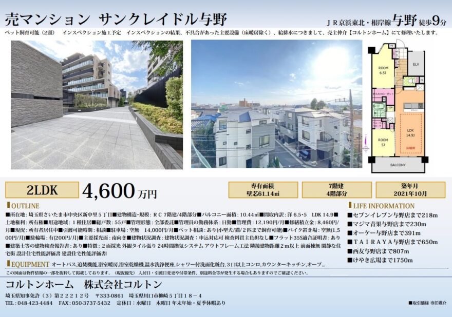 【専任物件】サンクレイドル与野 インスペクション施工予定