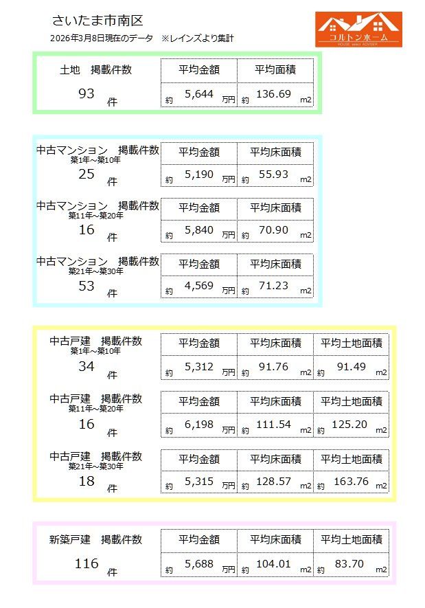 2026年3月8日付 さいたま市南区 不動産データ