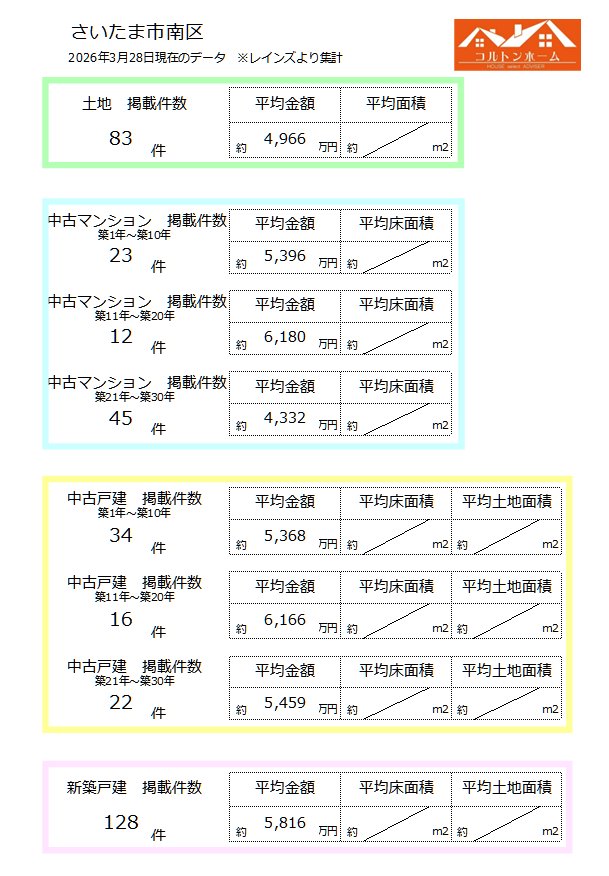 2026年3月28日現在、不動産流通機構【レインズ】に登録されていた、