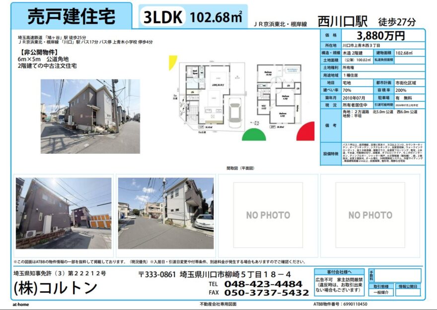 NEW 川口市上青木西 中古注文住宅(インスペクション施工予定)